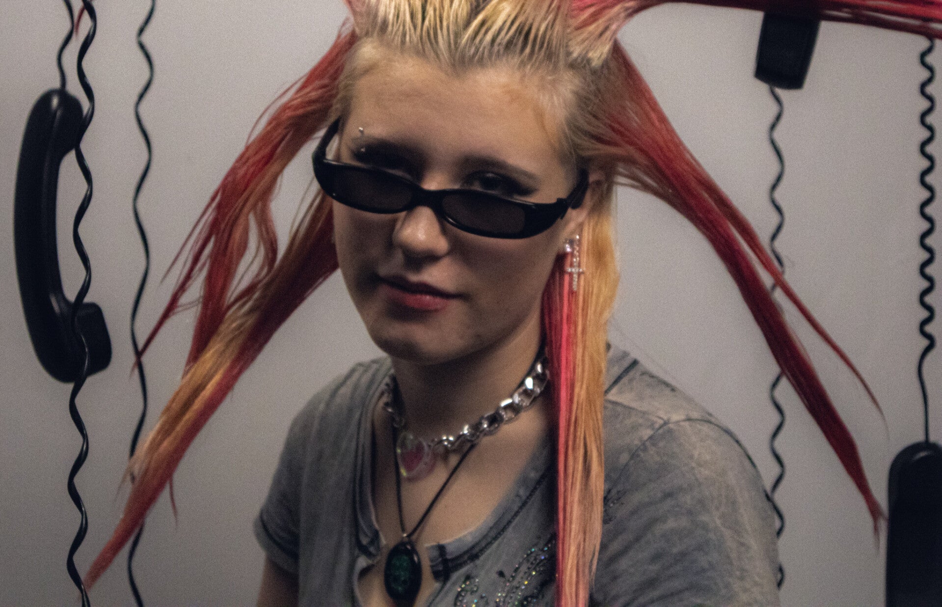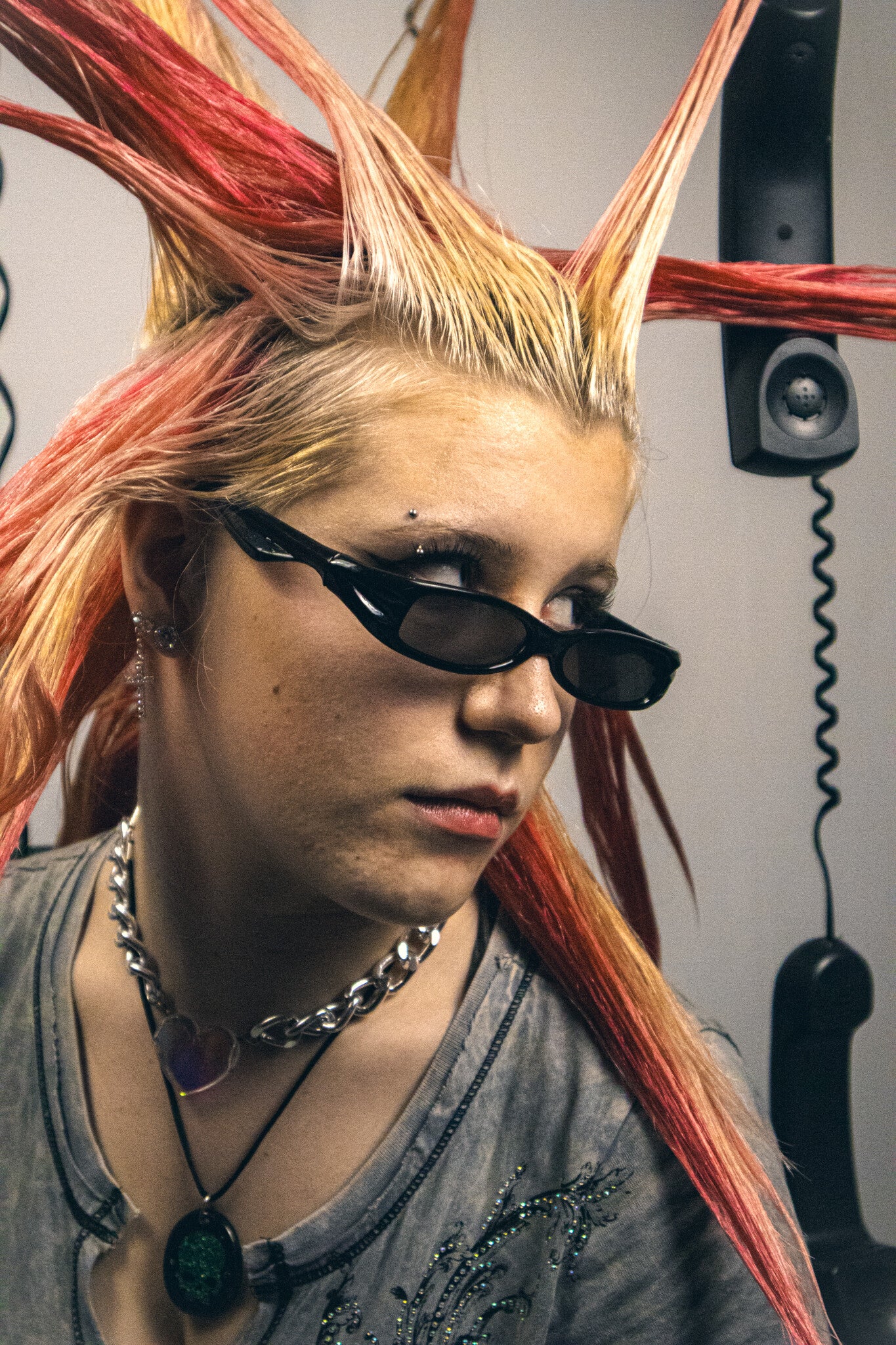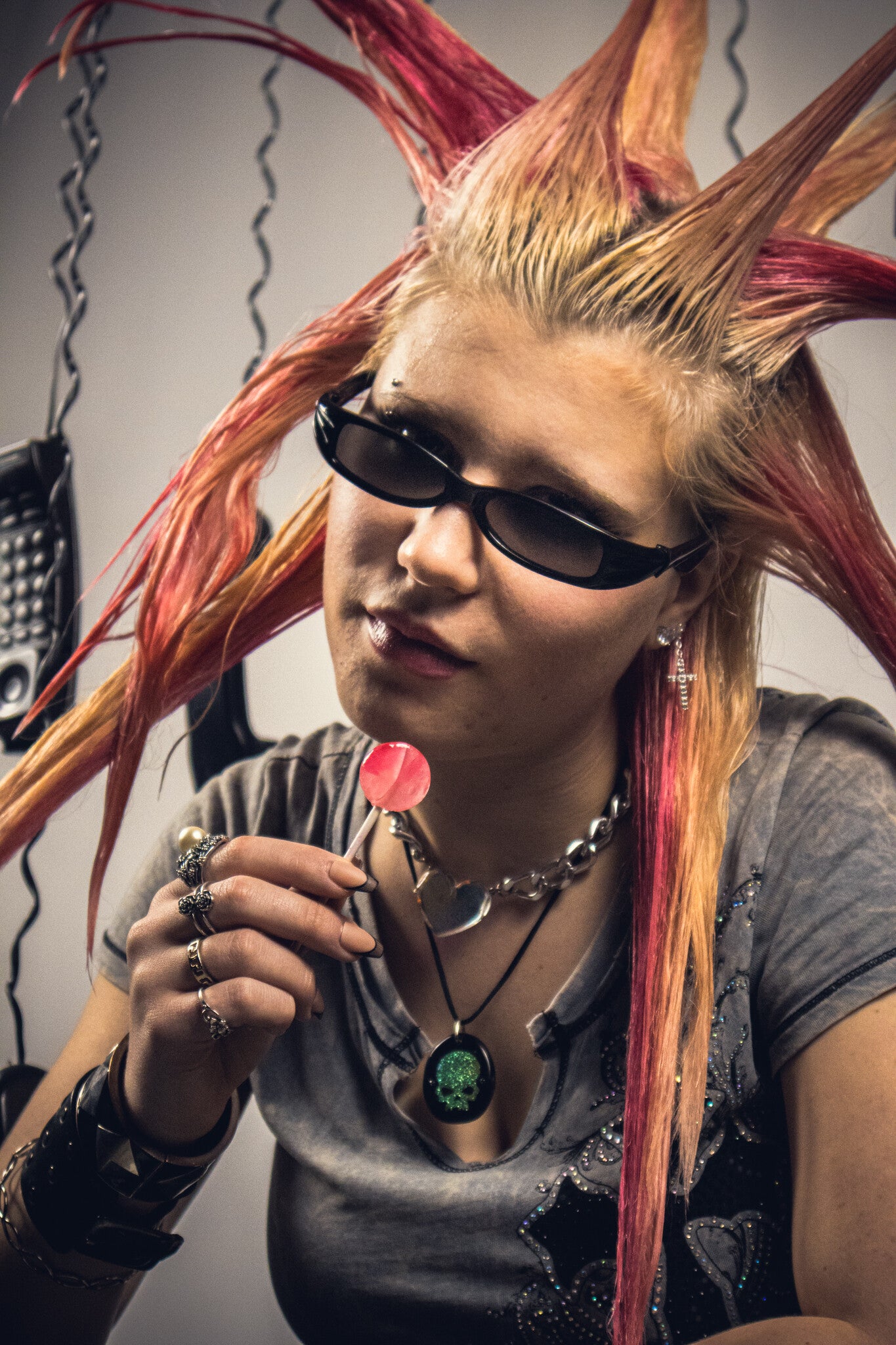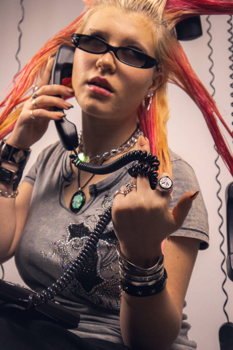 A custom built set of suspended black phones and milk crates placed against my white studio backdrop. Using the contrast between the light and dark elements creates a bold, graphic look. The arrangement plays with spacing, balance, and controlled chaos.
