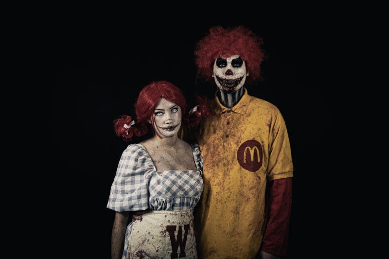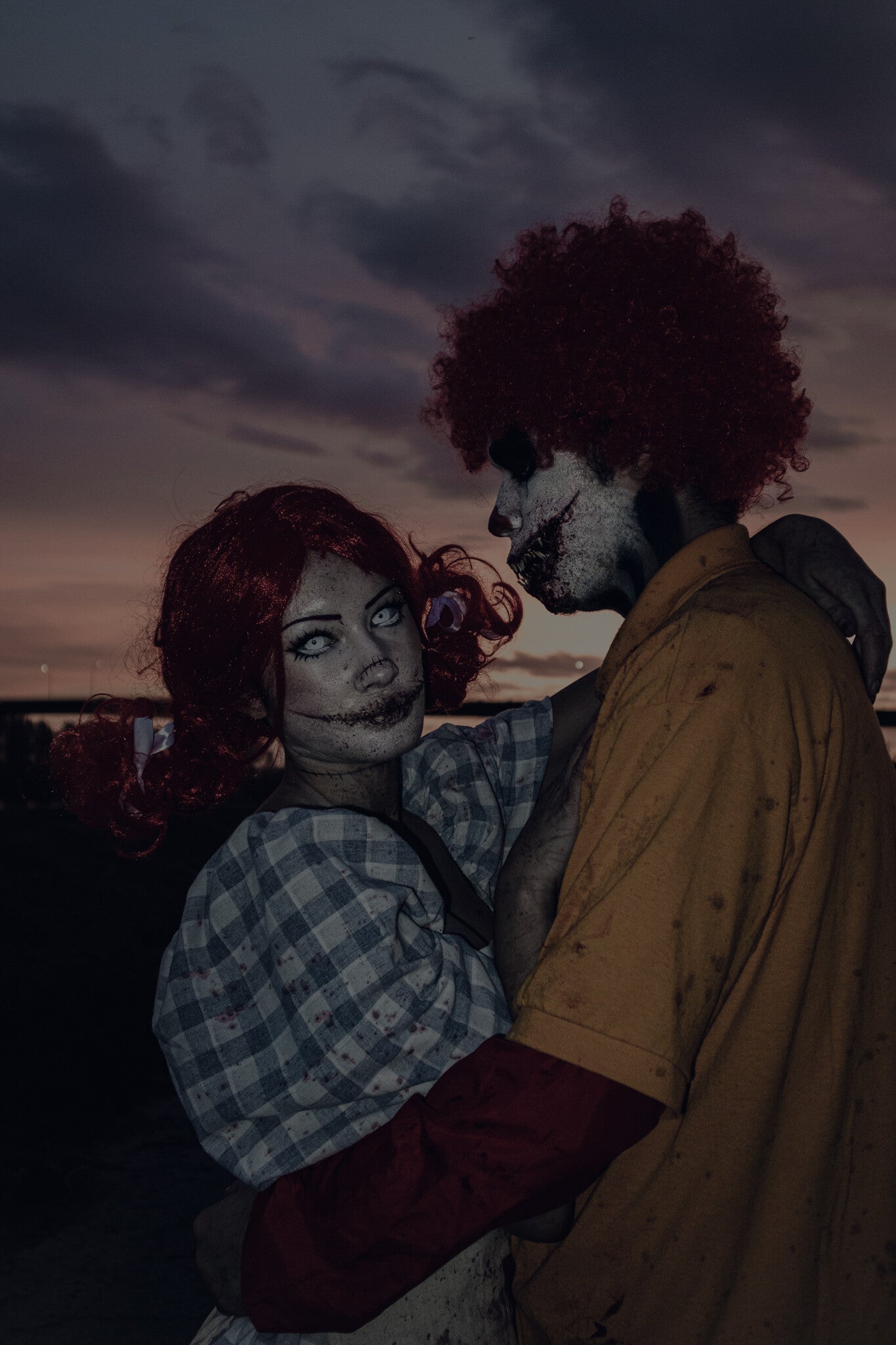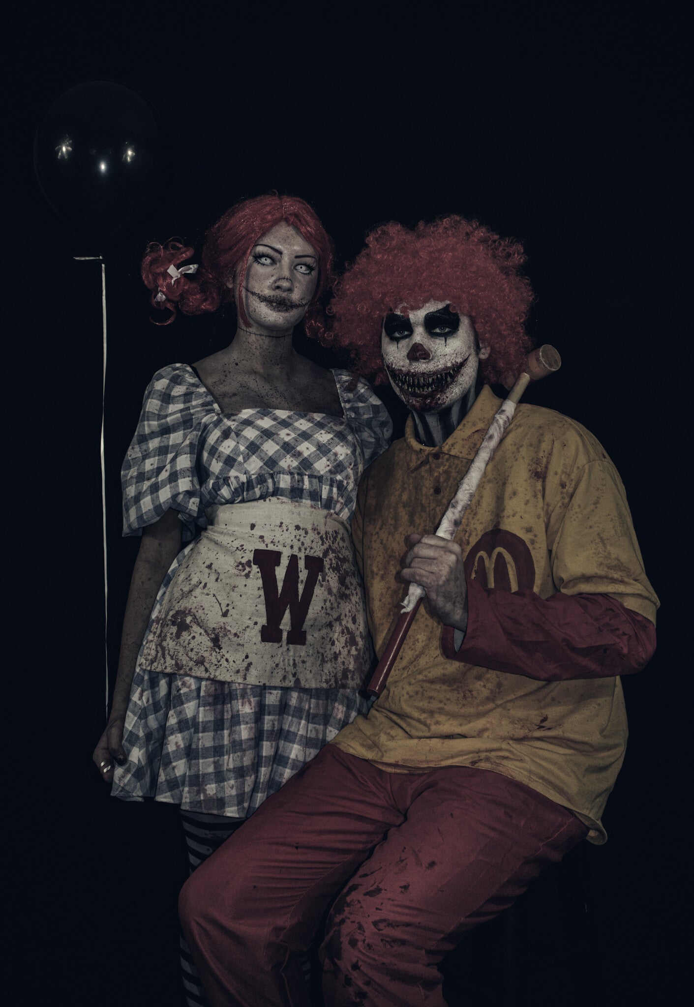 A Halloween Photoshoot inspired by two of the most famous fast-food characters, transforming them into a darker, more stripped-back setting.